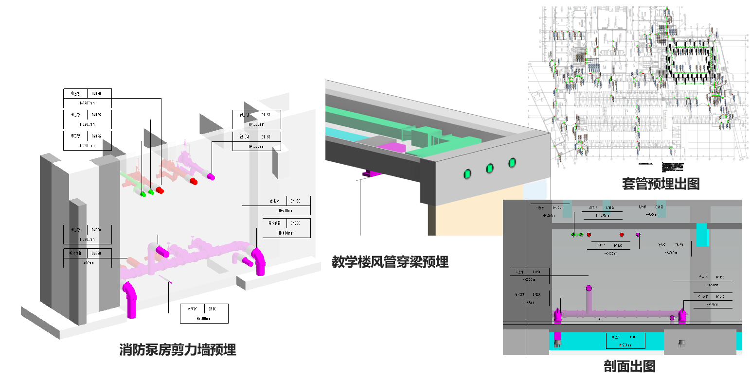 根据管线综合确定预埋套管位置及尺寸,提前输出预留洞口图纸,避免二次开凿。